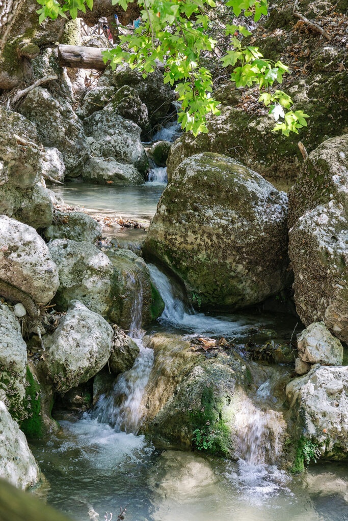 och sakta men säkert rinner vattnet neråt mellan stenarna i berget.