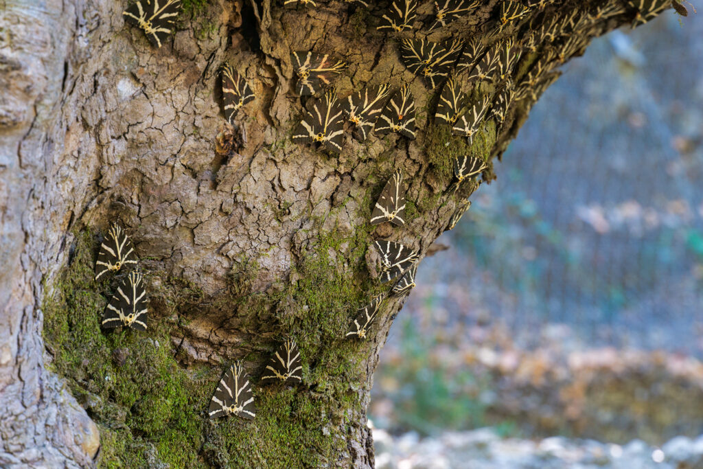 i tusentals men mest vilandes på träd och stenar i dalen och längs vägen upp på berget.